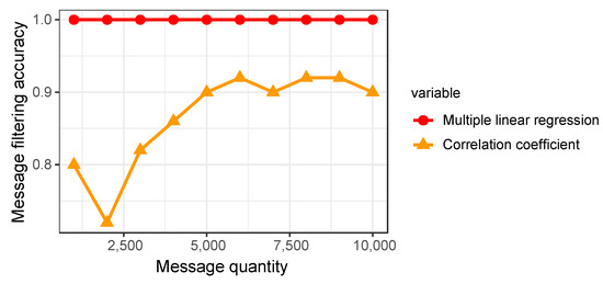 The results of the multivariate linear regression of the collected continuous vehicle behavior with each type of message are shown in Figure 11. The -axis is the determination coefficient of the multiple linear regression model, and the -axis is the effective ID distribution.