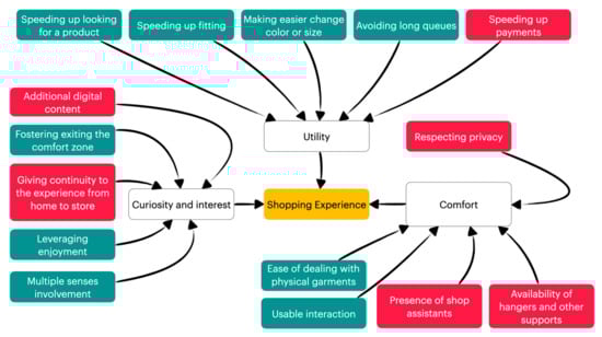 The coding activity brought out three main categories that can influence the shopping experience while using an AR fitting room: (1) Utility (66 items), (2) Curiosity and interest (43 items), and (3) Comfortable environment (26 items).
