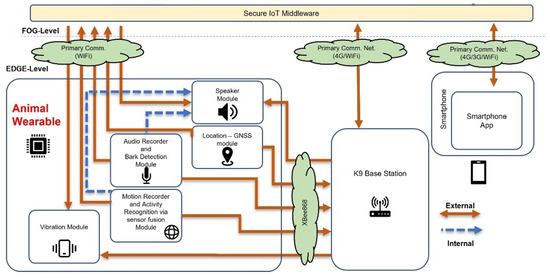 Wearable for animals—system architecture and communication flows.