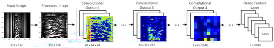 The physical parameters or features used in the classification of flow regimes are classically extracted from the flow by direct measurement, using a variety of instruments [6,7,8,9,10,11,12,13,14,15]. Some of these instruments require direct contact with the flow [6,7,8,9,10], while other methods read flow data in a non-intrusive manner [11,12,13,14,15]. Image-processing techniques represent a non-intrusive method by which to extract flow features for the purpose of flow regime study. In most incarnations of these methodologies, the useful image features are selected and extracted manually [16,17,18,19,20,21,22,23,24], with any flow classification being made in terms of groupings of these features.