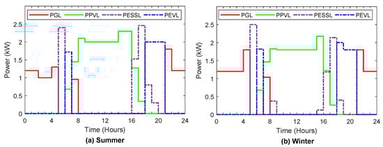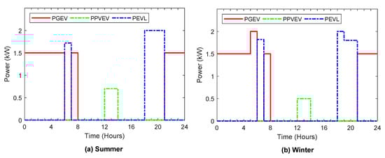 Optimal power flows from/to electric vehicle during summer and winter.