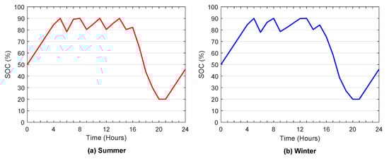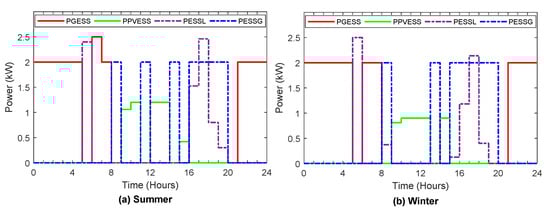 Optimal power flows from/to energy storage system during summer and winter.