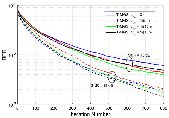 Figure 6, the BER performance including the T-MGS detector is shown in