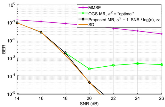 Figure 9 tends to a BER that is still far from the optimal, which is achieved via SD, therefore proving the usefulness of executing MR, as suggested in [