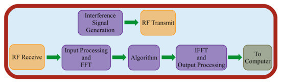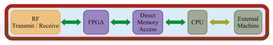 26]. Specifically for RF applications, the RFSoC offers a low-SWaP, one-piece FPGA accelerated hardware for RF transmit/receive, digital signal processing (DSP), CPU control, and data transfer [