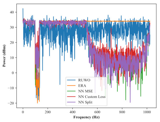 The computation of the frequency-domain binary mask for the neural network input is a nontrivial process that requires additional Fourier transformations which increases overall network latency. This increase, although small relative to the latencies of ERA and RUWO, is considerable compared to the neural network inference time which is in the order of nanoseconds. Additionally, this input scheme requires setting an interference threshold which limits the versatility of the network.