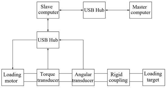 The position and torque loading system is shown in Figure 2, including loading motor, torque transducer, angle transducer, coupling, slave computer and master computer. The working principle is that the left side of the loading motor drives the whole shaft to rotate, which leads to the rotation of the other side of the shaft. In this process, the slave computer is responsible for collecting data and communicating with the master computer (PC), the torque transducer and angle transducer reads real-time data and responds to PC by the slave computer. Meanwhile, this requires designing a program in the PC to realize the precise control of the device under the loading motor.