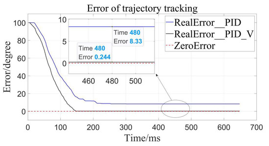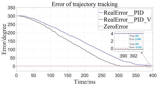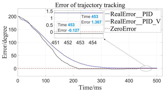 It can be clearly seen that the trajectory tracking (i.e., position loading) of the velocity-sensitive PID control is superior to the traditional PID control. In order to further quantify the gap, error analysis of the two is conducted (Figure 11, Figure 12 and Figure 13):