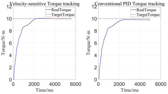 Here, we also explored the influence of improved PID control based on velocity sensitivity on the precision of constant torque loading. As we can see, in Figure 15, the improved PID control based on velocity sensitivity has more precise torque tracking than traditional PID control. That is to say, on the premise that adaptive robust controller plays a major role in torque tracking, improved PID control based on velocity-sensitive makes torque tracking more precise than before. Thus, improved PID control also exerts a positive impact on torque loading and it is indispensable in precise torque tracking.