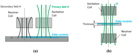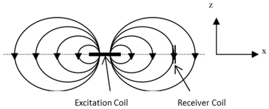 MIS is a low-cost technique that can be developed simply by using two coils; an excitation coil (Tx) and a receiver coil (Rx) [33], as shown in Figure 4. Tx produces primary fields which penetrate into the tissue. In response to the primary field, an eddy current will flow in the tissue. The tissue will produce its own field known as a secondary field or eddy current field. The signal used to evaluate the material is the change in impedance of the Rx coil. Thus, an alternating current (AC) source must be fed to Tx, which produces a dynamic magnetic field where time-varying magnetic flux around the coil is induced voltage and sensed by Rx [35]. The magnitude of the secondary field that is detected at Rx depends on the conductivity of the tissue and the applied frequency [36].
