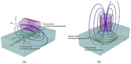 - Golestanirad, L.; Gale, J.T.; Manzoor, N.F.; Park, H.-J.; Glait, L.; Haer, F.; Kaltenbach, J.A.; Bonmassar, G. Solenoidal Micromagnetic Stimulation Enables Activation of Axons with Specific Orientation. Front. Physiol. 2018, 9, 724. [Google Scholar] [CrossRef] [Green Version]