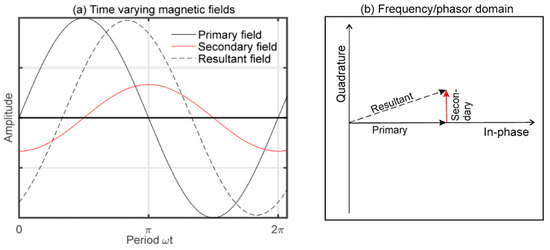 In the MIS system, the Rx signal is contributed by two components, which are the primary field (B) and the secondary field (∆B). The sum of B and ∆B is measured as the associated voltages at the receiver. Therefore, the phasor diagram in Figure 5 is presented to show the detected primary signal, V and secondary signal, ΔV. Rx signal is a summation of two voltages, V + ΔV, with lags to the primary voltage by angle [6].
