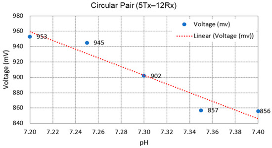MIS is well-known in industry for its use in search coils and non-destructive testing of cracks and flaws in metal [36]. It is capable of classifying non-ferrous metals (copper, aluminum, and brass) [47]. Furthermore, it is capable of analyzing the inductance curve, distinguishing discrete microstructural states, and determining the heating and cooling process’ phase transformation points [48]. MIS has previously been successfully used to determine the pH of water for water and wastewater treatment, with changes in hydrogen bonding cited as the source of observed pH effects [49]. In addition, it was designed on a food industrial scale to test samples of yeast suspension, apples, oranges, and tomatoes. MIS provides a method for measuring bioimpedance spectroscopy, which is conductivity without any contact with the test sample for various concentrations [50].