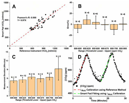 | Smart Pad: 14–19 Minute Measurement | y = 1.05x (R = 0.82) (VCO2) | Meets 510(k) Standard | N/A (contactless) |