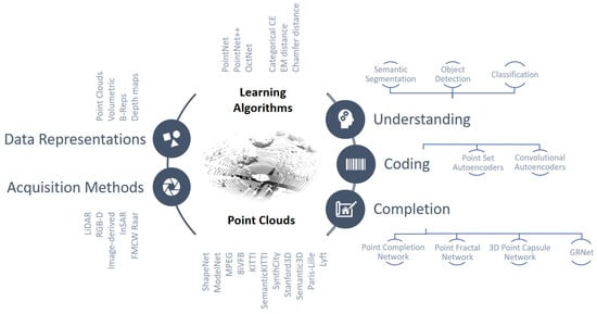 31]. On the other hand, the heterogeneous characteristics of point cloud data, as well as the data-oriented nature of DL solutions, have brought forward some issues and opened new research problems. From these premises, the analysis of the panorama of PC processing solutions needs to be revisited and reorganized according to new classification criteria.