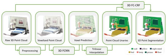 - Tchapmi, L.P.; Choy, C.B.; Armeni, I.; Gwak, J.; Savarese, S. SEGCloud: Semantic Segmentation of 3D Point Clouds. 2017. Available online: http://xxx.lanl.gov/abs/1710.07563 (accessed on 30 December 2021).