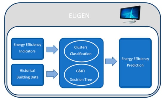 On the other hand, after extracting the knowledge hidden in BlueNet building data, an EE classification of the historical data was carried out through a hybrid system of classification. This EE classification allows the establishment of a relationship between days with similar features and also enables experts to compare the behavior on these days in EE terms. The classification module is based on a decision tree, the clustering of historical building data and the use of a set of energy efficiency indicators (Section 3.2). As a result, this classification identifies the presence of anomalous energy consumptions and other possible problems. In addition, a prediction system to quantify EE every day was developed (Section 3.3). This prediction is based on the features of each cluster classification, with the aim of assisting in the quantification of energy efficiency every day.