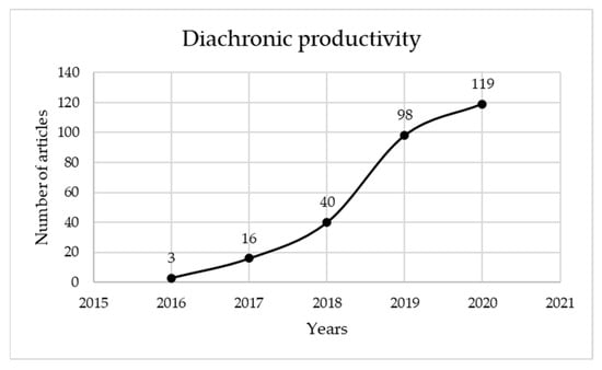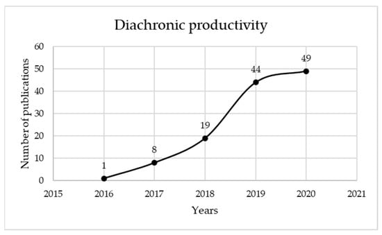 Figure 6 shows how the literature has been distributed since the initial presentation of the topic in a material in 2016, until 2020. It can be observed that, similar to the general search, the latter two years, 2019 and 2020, represented 76.7% of the total scientific production. Although the increase between 2019 and 2020 was not that high as 2018 to 2019, we can still say that there was an increase in publication of the subject among researchers.