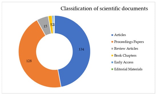Figure 3 shows the distribution of the different types of scientific publications. The great majority of publications were scientific articles closely followed by proceedings papers.