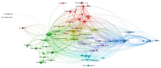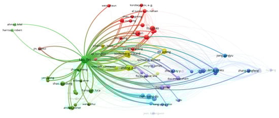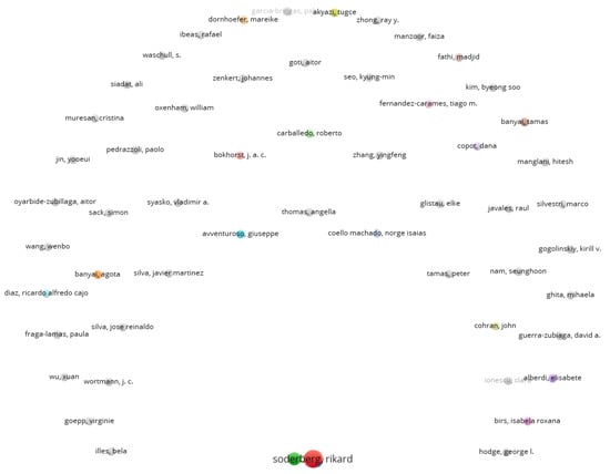 Regarding the networks that can be created, we analyzed the network of citation based on the authors (as a unit of analysis). VOSviewer was used to visualize the networks. As can be seen in Figure 3, there were 11 clusters and 1438 links, and the total link strength was 2186. Only authors with a minimum of two documents were analyzed, and of the total number of authors, only 141 met the threshold. Based on all the authors, the largest set of connected items consisted of 120 items (Figure 4).