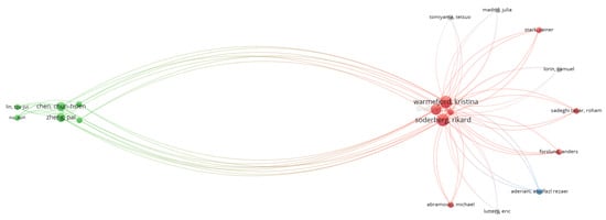 A total of 395 authors contributed to publishing at least one article on digital twin and smart manufacturing, and Industry 4.0. Under this criteria, the top researcher, namely, the one with the highest productivity, was Soderberg R. with seven materials. In the general search, he was the second highest author to have published an important number of publications. Lindkvist L., Liu C. and Xu X. were authors with more than six publications who were not present in the first search. Regarding citations, Tao F. was also in first place with an impact index of 221, compared with the next author, of just 86.75, as it can be seen in Table 5.