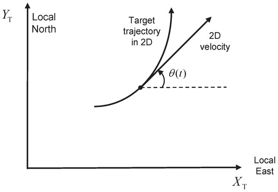 For the NCT model in the -plane, we use and for state vectors where the angular velocity is estimated. The velocity in and has Cartesian and polar coordinates, respectively. Let and denote the speed and heading of the target in the -plane. In this paper, the heading is defined as the angle of the velocity in the -plane, measured from the X-axis in the counter-clockwise direction, as shown in Figure 1.