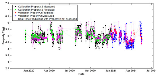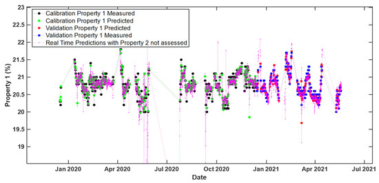 Similar results were obtained for real-time predictions with the model ‘MB-PLS no cut zone’ for Property 2, as shown in Figure 8.