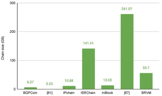 Inter-domain routing satisfies those assumptions for using blockchain. There are autonomous systems that do not trust each other, Border Gateway Protocol (BGP) offers almost no authentication of the content of received BGP messages, and the deployment of Resource Public Key Infrastructure (RPKI) is progressing relatively slowly. Autonomous systems often fight against attacks, such as BGP hijacking or route leaks, that affect the incorrect spread of routing information, which can influence the availability of services []. Blockchain technology can be an alternative or supplementary system to the existing structures to improve the authentication of the routing information in the inter-domain environment. Despite the attractive characteristics of blockchain, one of the critical limitations of blockchain is scalability, which can be an obstacle in its deployment []. The number of transactions processed per second has to be greater than or equal to the existing structure.