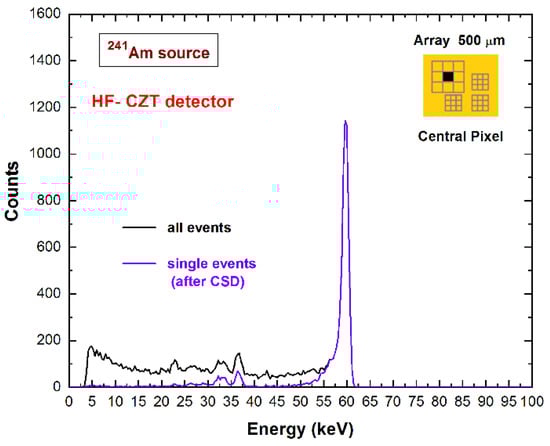 - Koch-Mehrin, K.A.L.; Bugby, S.L.; Lees, J.E.; Veale, M.C.; Wilson, M.D. Charge Sharing and Charge Loss in High-Flux Capable Pixelated CdZnTe Detectors. Sensors 2021, 21, 3260. [Google Scholar] [CrossRef]