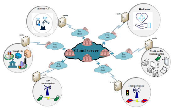 According to Tractia, an intelligent organization, annual earnings in the sector using blockchain technologies will reach 19.9 billion by 2025 [1]. IoTs are progressively active in health care to give real-time services to patients and physicians [2]. This is accomplished by incorporating IoMT medical devices into medical institutions and businesses. However, as the number of Internet-connected medical devices (IoMT) grows, a greater volume of inconsistent data will be generated [3]. The current implementation aspect of the (CCS) mode, which includes all activities carried out in the center, has significant challenges such as a high latency (HL), network dependency, individual points of failure and failure impact, and an inability to adapt to instantaneous transactions [4]. As a result, the fog or edge computing (EC) prototype supports the time and resource efficient services at the network’s edge. The fog layer (FL) serves as a middleware for management between the edge and the Cloud. Figure 1 shows the basic fog IoMT model [5]. Figure 1 represents the applications of IIOT in various domains. These domains range from smart transportation, smart industries, smart homes, and smart healthcare systems to smart education, etc. It assists the planner in establishing and delivering a service; hence, improving the resource balance and service latency. The 5G network enables mobile networks to connect and control machines and other things [6].