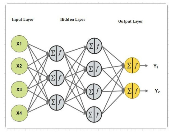 Our proposed neural network system is shown in Figure 5, Figure 6 and Figure 7, respectively in complete detail. The proposed neural network consists of input layers, hidden layers, and an output layer. In Figure 5, the proposed neural network model is presented. Figure 5 also explains the number of hidden layers, input layers, and output layers. The complexity of the proposed neural network can be seen in the number of hidden layers. The more hidden layers, the more complex the system. Figure 6 represents the detailed structure of our proposed convolutional neural network (CNN) and shows how we trained the dataset. We used an IoT-based dataset and we divided it into two parts. The division of the dataset was based on the testing and training. We trained 30% of the data and then we tested 70% of the data. Figure 6 describes each step carried out through the training and testing in a schematic way.