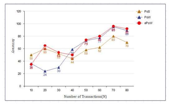 Figure 10 shows the effect of the number of rounds and the error rate. We compared our proposed framework to the models that are already out there. We can see from Figure 11 that our new framework is more efficient than the benchmark models. In Figure 12, we ran simulations based on how many transactions and how accurate they were. In the first simulation, the honest node behavior was set to make real blocks and real votes when the nodes were chosen as miners, while malicious nodes made fake blocks and fake votes together when nodes were chosen as miners. As shown in Figure 13, in this simulation, we changed the percentage of the malicious nodes so that we could see how well the proposed framework worked and how well the benchmark model worked based on the bandwidth and number of rounds. It was set to 0 to 300 nodes. Figure 13 shows how it looked. The accuracy of PoIP was better when there were a lot of nodes, such as 500 or more. As soon as the percentage of malicious nodes is more than 50%, the accuracy will go down a lot. If the proposed framework is better than the others because the positive value is used to pick honest miners, then it is better than the other frameworks. The percentage of a malicious node in real blockchains does not go above 50% in this kind of case. It is important to see how quickly one block creation works so we ran a second simulation with a different number of nodes to see how well it worked. We used the average time of 100 (or 50) rounds of block generation as the simulation results, but we did not t lose generality with this method. PoW was the most efficient, as shown in Figure 14. The performance of the proposed framework was better when random honest miners were chosen from the group of miners. Our simulation results were based on the average time of 200 rounds of block creation. This way, we did not t lose the generality of our results. There is a group of people who work together to make PoN more efficient, as shown in Figure 15. The development of concurrent multi-blocks can help. In tests, it was found that the proposed strategy was both effective and efficient at providing secure data sharing and access control for the IoT-based supply chain system. The proposed method stopped some bad things from happening, such as impersonation and Sybil attacks. People could join a federation without permission, and the process was completely fair. It allowed anyone who was a validator to become involved in a mine for a specific reward, which may change over time. If you look at Figure 16, you can see that our proposed framework increased security and significantly reduced the. To test the efficiency with one block creation, we ran a second simulation with a different number of nodes. We used the average time of 100 (or 50) rounds of block generation as the simulation results without losing generality. PoW had the highest efficiency, as demonstrated in Figure 14. The performance of the proposed framework was enhanced by generating random honest miners from the miner’s group. We used the average time of 200 rounds of block creation as the simulation result without losing generality. With the help of the mining team, the development of concurrent multi-blocks can enhance the efficiency of PoN, as shown in Figure 15. The experimental results show that the proposed strategy is effective and efficient in providing secure data sharing and access control services for the IoT-based supply chain system. The proposed methodology resisted some malicious activities, such as impersonation and Sybil attacks. The process of joining a federation was fully decentralized, permissionless, and fair. It enabled any validator to engage in a mine for explicit reward sharing, which may change dynamically. Our proposed framework improved security and significantly reduced the computational resources needed to maintain a strict level of safety security in the blockchain, as shown in Figure 16.