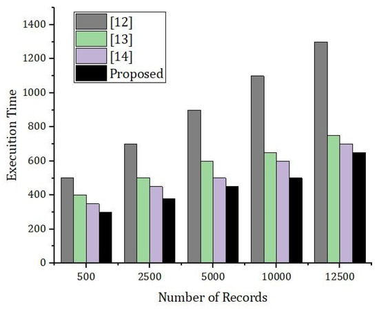 Figure 18 represents the simulation results based on the number of records and the execution time in seconds. The number of records were counted from 500 to 10,000, respectively. We compared our proposed framework with the benchmark model. From Figure 18 it is very clear that the execution time for the same number of rounds in case of our proposed framework was much less compared to the benchmark model.