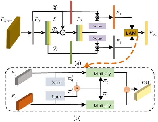The structure of the LLM module. (a) Feature reuse module. (b) Location attention module for multi-layer feature fusion.