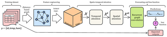 - Lu, Y.J.; Li, C.T. AGSTN: Learning Attention-adjusted Graph Spatio-Temporal Networks for Short-term Urban Sensor Value Forecasting. In Proceedings of the 2020 IEEE International Conference on Data Mining (ICDM), Sorrento, Italy, 17–20 November 2020; pp. 1148–1153. [Google Scholar]