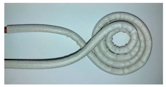 Such a measurement can be realized by employing a primary-secondary coil arrangement, as schematically depicted in Figure 2a, and shown in Figure 2b. The secondary (search) coil was wound around an epoxy tube substrate manufactured by a 3D printer, while the primary coil was wound around and on top of the secondary coil, after setting a plastic insulator on top of the secondary coil. The secondary coil was made of high temperature resistance enameled copper wire of 0.1 mm diameter, having 300 turns in four layers. The primary coil was a high temperature resistance enameled copper wire of 0.5 mm diameter, having 100 turns. The length of the substrate was 60 mm and its internal and external diameter was 11 mm and 13 mm respectively.