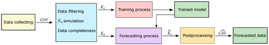 Figure 3. Training and forecast processes from collected data by using the clear sky index ( K t ).