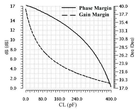 Besides the obvious requirement to ensure stability for all operating conditions, the LDO envisaged here should exhibit 40 degrees of phase margin for CL = 0 and maximum load current. Some design leeway is provided by setting to 15 degrees the minimum value of the LDO phase margin that should be maintained over the entire range of load current and capacitance, as well as the temperature set above. This value is smaller than the typical target for LDOs, that is 25 to 30 degrees, but one should note that stable LDOs with a phase margin below10 degrees have been reported recently [10].