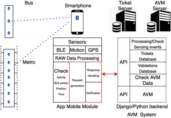 The earlier experiences relied on a single technology, either Wi-Fi or Bluetooth, whereas current approaches often use more than one technology, each one used to address the disadvantages/the shortcomings of the others [7]. Our system, which can work as both a CIBO and a BIBO system, can use different technologies at the same time to validate the travel ticket: QR (Quick Response) codes, BLE, GPS, and data from the smartphone’s motion and orientation sensors. It also uses 3G/4G connection to send useful data to the servers of the transport service provider. The choice of the ticket validation method is ultimately left to the users, who will decide with which configuration they feel more comfortable. Also, many of the previous experimentations included some sort of system to automatically pay for tickets. However, the prototype we are proposing focuses only on a system that automates ticket validation, relying on an existing system for the purchase of travel tickets and prompting users to buy a new one only when they don’t already have one available. We leave the possibility of including automated ticket purchase in a future version of the prototype.