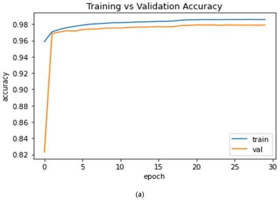 At the end, we adjusted the hyper-parameter while compiling the model. We used optimizer adaptive moment estimation (Adam) [64] instead of stochastic gradient descent optimizer and changed the activation function from softmax to sigmoid [65]. The sigmoid function is defined in Equation (1).