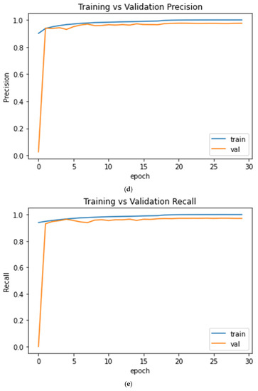 The fraction of all positive images in three classes is correctly predicted as positive by the classifier. The recall Equation (6) is as below.