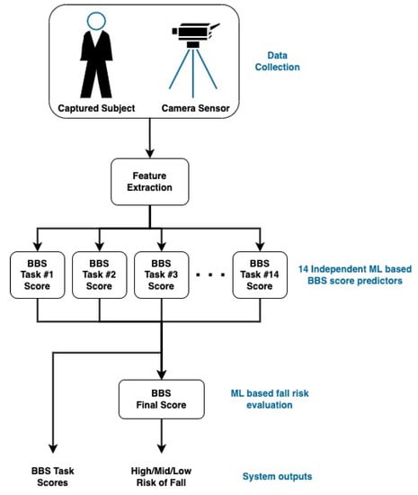 To be widely used, outside medical centers, the system must be non-intrusive, portable, and easy to use, while still maintaining reliable and consistent BBS score predictions. The proposed system consists of three major components (see Figure 1):