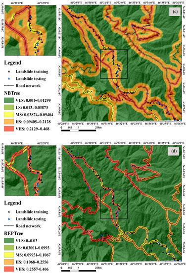 - Chen, W.; Xie, X.; Peng, J.; Wang, J.; Duan, Z.; Hong, H. GIS-based landslide susceptibility modelling: A comparative assessment of kernel logistic regression, Naïve-Bayes tree, and alternating decision tree models. Geomat. Nat. Hazards Risk 2017, 8, 950–973. [Google Scholar] [CrossRef] [Green Version]