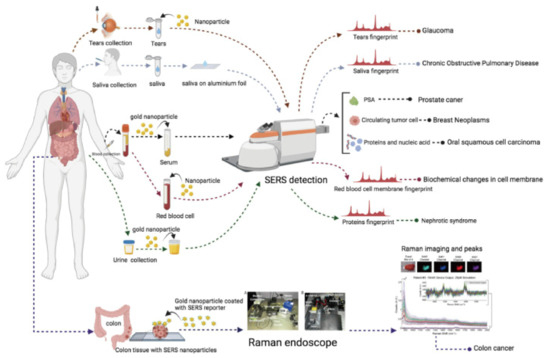 - Xi, X.; Liang, C. Perspective of future SERS clinical application based on current status of Raman spectroscopy clinical trials. Front. Chem. 2021, 9, 665841. [Google Scholar] [CrossRef]