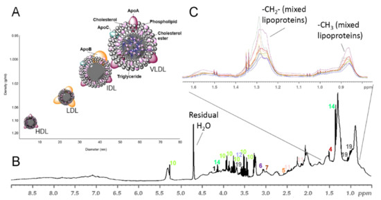 - Jiménez, B.; Holmes, E.; Heude, C.; Tolson, R.F.; Harvey, N.; Lodge, S.L.; Chetwynd, A.J.; Cannet, C.; Fang, F.; Pearce, J.T.; et al. Quantitative lipoprotein subclass and low molecular weight metabolite analysis in human serum and plasma by 1H NMR spectroscopy in a multilaboratory trial. Anal. Chem. 2018, 90, 11962–11971. [Google Scholar] [CrossRef]