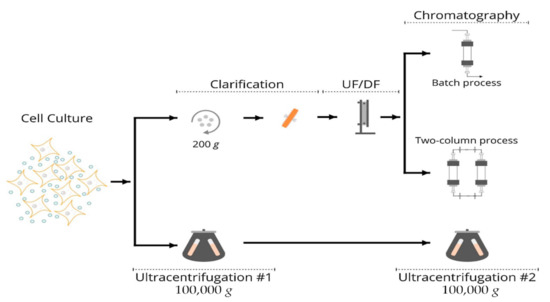 - Moleirinho, M.G.; Silva, R.J.S.; Carrondo, M.J.T.; Alves, P.M.; Piexoto, C. Exosome-based therapeutics: Purification using semi-continuous multi-column chromatography. Sep. Purif. Technol. 2019, 224, 515–523. [Google Scholar] [CrossRef]