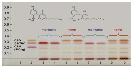 - Liu, Y.; Brettell, T.A.; Victoria, J.; Wood, M.R.; Starets, M. High performance thin-layer chromatography (HPTLC) analysis of cannabinoids in cannabis extracts. Forensic Chem. 2020, 19, 100249. [Google Scholar] [CrossRef]