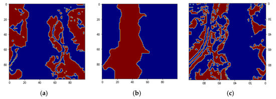 Table 1 and Table 2 shows the accuracy and F1 score obtained from 10-fold cross validation for three clusters with 3, 5, and 7 PCA bands, using the three scaling methods of standardization normalization (ns), max scaling (ms), and min–max scaling(sc) for the HSI2 Image 1 in Figure 7a, and HSI2 Image 2 in Figure 7b, respectively. The three clusters are land, water, and clouds. Table 3 and Table 4 show the accuracy and F1 score obtained from 10-fold cross validation for three clusters with 3, 5, and 7 PCA bands, using the three scaling methods of normalization scaling, min–max scaling, and max scaling for the HSI2 Image 2 in Figure 7b.