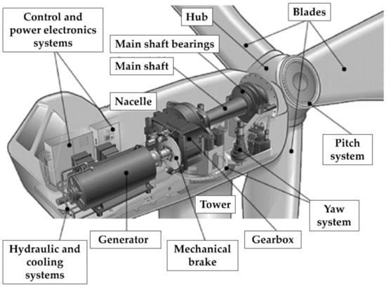 Recalling Figure 7b,c, one can see that the mechanical failures (including brakes, gears, drive train, and generator) are preponderant in terms of both total failures and downtime. For this reason, the majority of scientific research focuses on the CM of these components housed inside the nacelle.