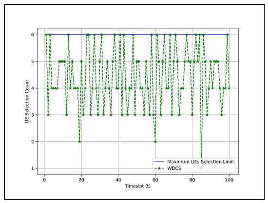 - In EDCS and WDCS, UEs are selected based on . Therefore, UEs selected under one group for data transmission in one time instance may belong to a different group in another time instance. However, in such a scenario, the UEs that have already had the opportunity to transmit data in the previous time instance may be preferred over the UEs of the same group that have not yet had the opportunity to transmit data.